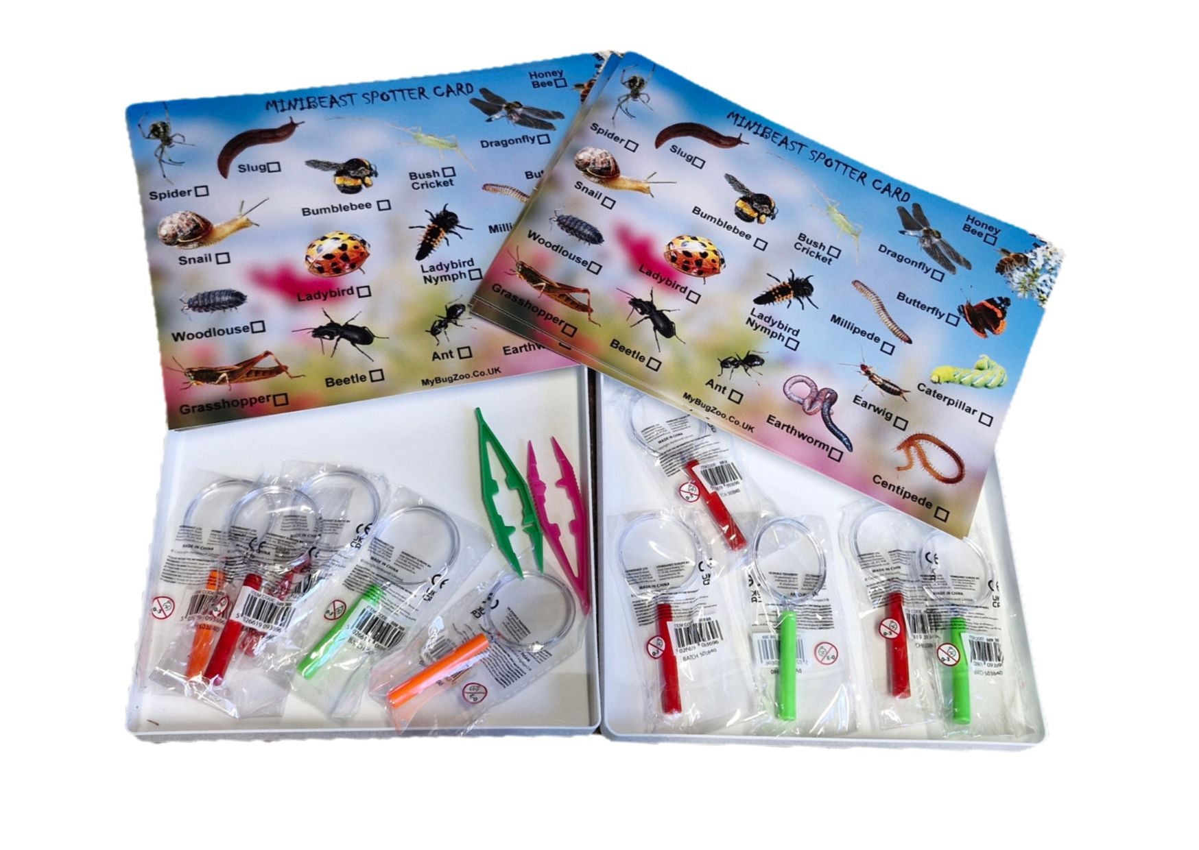 Dual-Purpose White Plastic Hard Case: The durable hard case not only provides secure storage for the bug sheets and magnifying glasses but also cleverly doubles as a pair of specimen trays. These trays are ideal for observing and studying the minibeasts up close, fostering a hands-on learning experience.